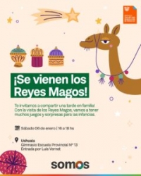 El sábado 6 de enero de 2024 se celebrará en Ushuaia la llegada de los Reyes Magos. Habrá juegos, música y muchas sorpresas más para los pequeños y pequeñas y las familias. La cita es de 16 a 18 h en el Gimnasio de la Escuela Provincial N°13 (Entrada por Luis Vernet) La entrada es libre y gratuita.
