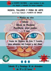 Sàbado 15 y Domingo 16 de Diciembre de 2018 en la Casa Cultural L Planeta de Orìgen se realizarà el evento cultural Mùsica y Feria de Arte.