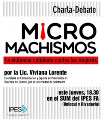 El Jueves 15 de Junio de 2017 se realizará la charla-debate "Micro Machismos: La violencia cotidiana contra las mujeres" a cargo de la licenciada en comunicación Viviana Lorente.