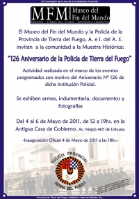 Desde el Miércoles 4 hasta el Viernes 6 de Mayo de 2011 se econtrará en la Antigua Casa de Gobierno, Maipú 465,la muestra "126 Aniversario de la PolicÃa de Tierra del Fuego".