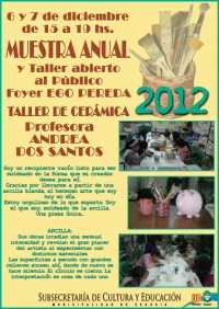 Muestra anual y taller abierto al público del Taller de Cerámica de la Prof. Andrea Dos Santos.
