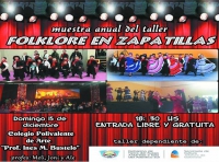 El Domingo 15 de Diciembre de 2013 se realizará la muestra anual Folklore en Zapatillas a partir de las 18:30 hs. en el colegio Polivalente de Arte con entrada libre y gratuita.