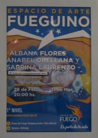 Del 28 de Febrero al 31 de Marzo de 2014 se realizará la muestra Arte del Corazón con obras de Albana Flores, Anabel Orellana y Sabrina Laurenzo. La cita es en el Espacio de Arte Fueguino ubicado en el 1° nivel del Paseo del Fuego.