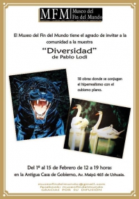 Desde el Miércoles 1° al Miércoles 15 de Febrero de 2012 se podrá visitar la muestra "Diversidad", de Pablo Lodi. Se trata de 18 obras que combinan Hiperrealismo y Cubismo Plano.