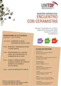 El Domingo 7 de Diciembre de 2014 se llevará a cabo la Muestra Interactiva Encuentro con Ceramistas en la Sede de la UNTDF -Yrigoyen 879-.