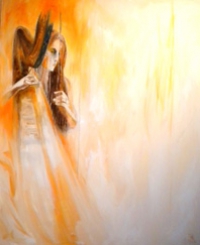 La música se mezcla con la imagen generando espacios propios donde el color aúna los movimientos, algunos cuadros pertenecen a la serie “Clavijeros”, ellos esta inspirados en instrumentos antiguos que ejecutan operas y obras sinfónicas. Así la imagen recrea y unifica elementos diversos, generando una simbiosis entre la obra musical, la música, el ejecutante y la pintura".