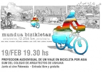 El Viernes 19 de Febrero de 2016 se realizará la proyección del audiovisual "Mundua Bizikletaz: Un viaje en bicicleta por Asia" en el SUM del Colegio de Arquitectos de Ushuaia -junto al cine Pakewaia- a las 19:30 hs. con entrada libre y gratuita.