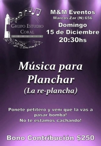 El Domingo 15 de Diciembre de 2019 el Grupo Estudio Coral Ushuaia presentará Música para planchar (La re-plancha) en M & M Eventos a las 20:30 hs.