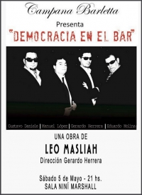 El Sábado 5 de Mayo de 2012 la CompañÃa de Teatro Campana Barletta pondrá en escena "Democracia en el bar", de Leo Masliah.