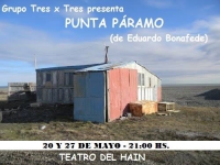 Los días Sábado 20 y 27 de Mayo de 2017 el Grupo Tres x Tres presenta la obra Punta Páramo de Eduardo Bonafede a las 21:00 hs. en el Teatro del Hain