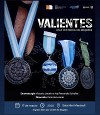 El viernes 17 de marzo de 2023 se pondrá en escena la obra Valientes, Una Historia de Mujeres con la dirección de Victoria Lerario. La cita es a las 21:00 hs. en la Sala Niní Marshall con ingreso por orden de llegada.