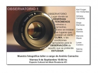 Desde el Viernes 9 hasta el Jueves 29 de Septiembre de 2011 se podrá visitar la muestra fotográfica "Observatorio 1", del taller de Andrés Camacho.