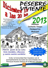 Se presentarán la Banda Municipal de Música, el Coro de Señas y la Escuela de Danzas Folklóricas "Nuestras Raíces". Habrá feria navideña, villancicos y cuenta cuentos navideños. A las 20:00 hs. comenzará el Pesebre Viviente.