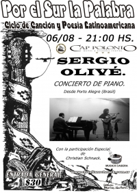 El Sábado 6 de Agosto de 2011 se presentará Sergio Olivé en concierto de piano, con la participación de Christian Schnack. En el marco del Ciclo de canción y poesÃa.