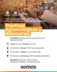 Desde la Secretaría de Desarrollo Productivo y PyME, en conjunto con INTA Argentina y Proyecto CIESA se invita a participar al sector hortícola y técnicos de la provincia a la primer capacitación teórico práctica de Sistemas Productivos Frutihortícolas Sostenibles.