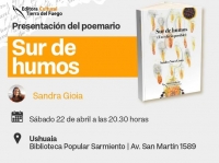 El sábado 22 de abril de 2023 se presentará el libro de poesía "Sur de Humos (un islario posible)" de Sandra Nora Gioia en la Biblioteca Popular Sarmiento a las 20:30 hs.