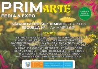 El Sábado 21 de Septiembre se realizará la expo de artistas y productores locales PrimArte, en la Escuela N°1 "Domingo F. Sarmiento" de 17:00 a 23:00 hs.