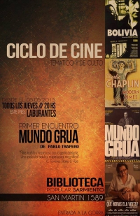 El Jueves 5 de Mayo de 2016 la Biblioteca Sarmiento presenta la proyección del film Mundo Grúa (Pablo Trapero) en el marco de su Ciclo de Cine Temático y de Culto: Laburantes. La cita es a las 20:00 hs. en San Martín 1589 con entrada a la gorra