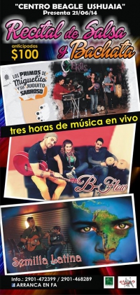 El Sábado 21 de Junio de 2014 se realizará un Recital de salsa y bachata, tres horas de música en vivo. Participarán "Los Primos de Miguelito y su Juguito Sabroso" (salsa -Río Grande), "B-Flow" (Bachata - Río Grande) y "Semilla Latina" (Salsa - Ushuaia).