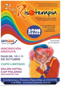 Del Jueves 9 al Sábado 11 de Octubre de 2014 se llevará a cabo el 2° Taller de Risoterapia que dictará la Licenciada María Alejandra Acosta.