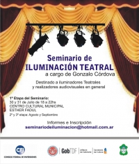 Los dÃas Lunes 30 y Martes 31 de Julio se dictará la 1° etapa del Seminario de Iluminación Teatral, a cargo de Gonzalo Córdova. El mismo está destinado a iluminadores teatrales y realizadores audiovisuales en general.