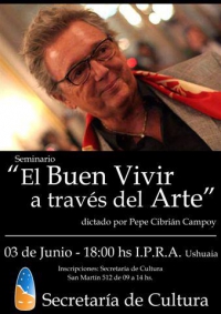 El Domingo 3 de Junio de 2012 se realizará el seminario El Buen Vivir a través del Arte dictado por Pepe Cibrián Campoy. Las inscripciones se realizan en la SecretarÃa de Cultura -San MartÃn 512- de 09:00 a 14:00 hs. El seminario se dictará en el Salón del I.P.R.A. a las 18:00 hs.