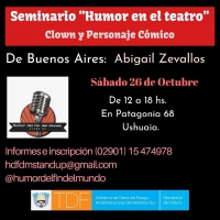 El Sábado 26 de Octubre se llevará a cabo el Seminario "Humor en el teatro" Clown y Personaje Cómico, a cargo de Abigail Zevallos.