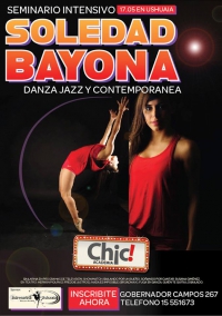 El Sábado 17 de Mayo de 2014 la bailarina Soledad Bayona brindará un Seminario intensivo de danza jazz y contemporánea. Las inscripciones se realizan en Chic Academia Musical.