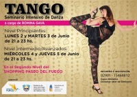 La bailarina Romina Gava brindará un Seminario Intensivo de Tango. El Lunes 2 y Martes 3 de Junio de 21:00 a 23:00 hs. para principiantes. El Miércoles 4 y Jueves 5 de Junio de 2014 de 21:00 a 23:00 hs.para niveles intermedio y avanzados. Para consultas llamar al cel. 2901-15464812