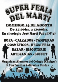 El Domingo 19 de Agosto de 2012 se realizará la Super Feria del MartÃ. Se podrá encontrar ropa, calzados, camperas, cosméticos, regalerÃa, bazar, bijouterie, artesanÃas y también habrá buffet.