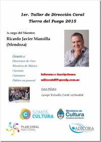 Del 3 al 5 de Julio de 2015 se realizará en Ushuaia un Taller de Dirección Coral a cargo del maestro Ricardo Javier Mansilla de la provincia de Mendoza. El curso está orientado a directores de coros, docentes de música, coreutas, cantantes y al público en general.