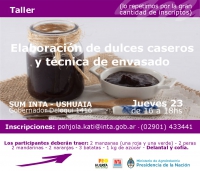 El Jueves 23 de Junio de 2016 se realizará el taller "Elaboración de dulces caseros y técnicas de envasado".