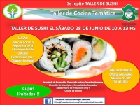 El Sábado 28 de Junio de 2014 se realizará el Taller de Sushi en el marco de los Talleres de cocina temática. La actividad se realizará en el Taller de Cocina y Repostería de la Municipalidad de Ushuaia -Gobernador Paz y Olegario Andrade- de 10:00 a 13:00 hs.