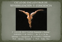 El Sábado 5 de Mayo de 2012 de 11:00 a 16:00 hs. se realizará el Taller "La piel, sensación y sentido", a cargo de Adriana Toninski y Kuky Rey. El mismo es parte del Ciclo 2012 de Encuentros de sensibilización y conciencia, con aplicación de tecnicas de Eutonia, Feldelkrais y Danzaterapia.