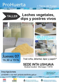 El Jueves 7 de Abril de 2016 se realizará el taller "Leches Vegetales, dips y postres vivos", a cargo de Tamara Sánchez y Gisela Gurgone.