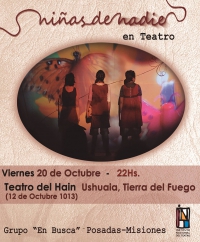 El Viernes 20 de Octubre de 2017 se presentará la obra "Niñas de nadie" a cargo del grupo En Busca.