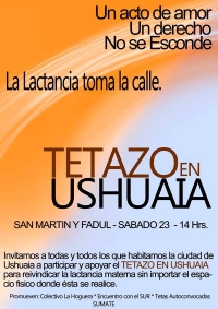 El Sábado 23 de Julio se llevará a cabo el Tetazo en Ushuaia con las consignas "La lactancia toma la calle" y "Un acto de amor, un derecho no se esconde".