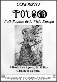 El día Sábado 6 de Agosto de 2011 se presentará en concierto Totem Folk pagano de la vieja Europa. Tradiciones, leyendas, ritos y melodías de los pueblos germánicos, ibéricos, islandés y bretón.