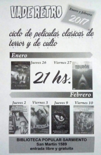 El ciclo tendrá lugar en la Biblioteca Popular Sarmiento a las 21:00 hs.
