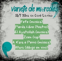El 13 de Julio se realizará la Varieté de Miércoles, en Café Latino a partir de las 23:00 hs.
