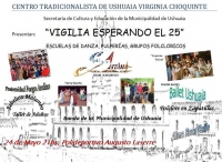El Sábado 24 de Mayo de 2014 se realizará el festival folclórico "Vigilia Esperando el 25". El encuentro es organizado por el Centro Tradicionalista de Ushuaia Virginia Choquintel. Se presentarán Fraternidad Fuego Andino, Sur Andino, Nuestras Raíces, Rebelión Malambo, Tierra Gaucha, Ballet Ushuaia y Alma Reza Baile. Habrá escuela de danza, pulperías y grupos folclóricos.