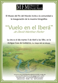 El dÃa Martes 5 de Abril de 2011 se realizará la inauguración de la muestra fotográfica "Vuelo en el Iberá", de David MartÃnez Fischer.