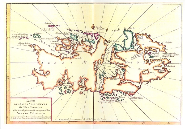 El mapa Carte des Isles Malouines fue producido por Jacques Bellin en 1764. Una copia se encuentra exhibida en el Museo Malvinas e Islas del Atlántico Sur ubicado en Santiago de Calzadilla 1301 en el Espacio Memoria y Derechos Humanos en la ciudad de Buenos Aires.