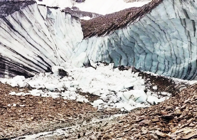 Además, el estudio indicó que "el adelgazamiento del techo genera grietas sobre el glaciar lo que provocará su colapso".