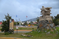 La escultura que fue descubierta el 4 de marzo de 2020 fue impulsada por la Fundación Alemana de Tierra del Fuego y fue tallada en la ciudad por el artista plástico Juan Bejarano,. La obra fue realizada en un bloque de mármol travertino que se distingue por su inalterabilidad en el tiempo.