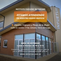 Informamos que ya nos encontramos trabajando en la nueva oficina ubicada en Hipólito Yrigoyen y Paseo de la Mujer (calle sin nombre 1710) de Ushuaia.