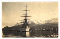La fragata Sarmiento llega a Ushuaia el 23 de abril de 1932 en su 32º viaje de instrucción.