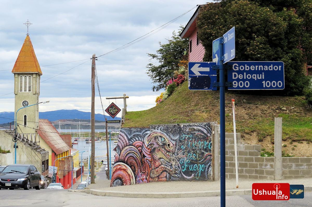 08:47 hs. Mural de Alejandro Abt en el centro de Ushuaia