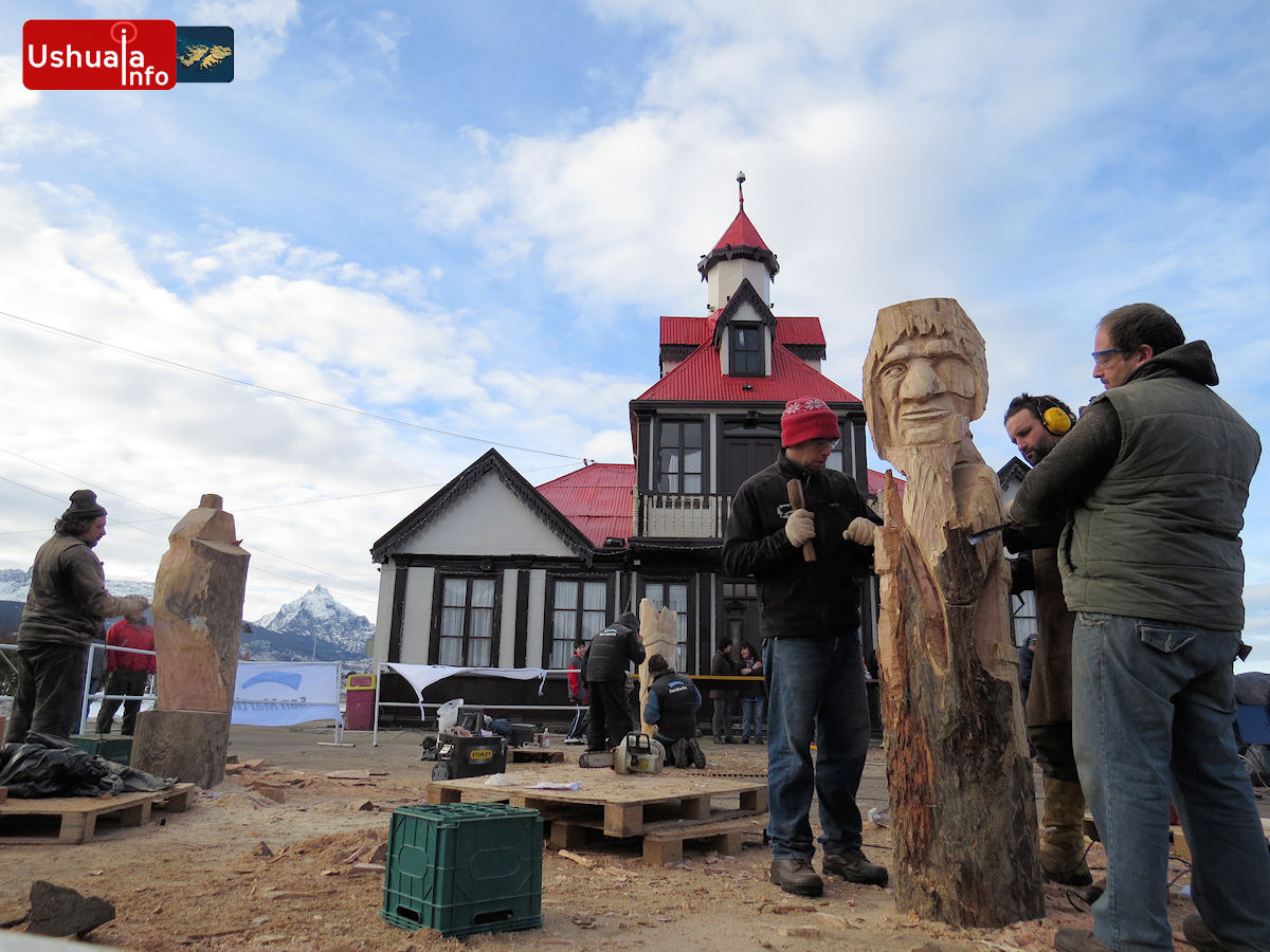 01/08/2014 | 14:35 hs. Los escultores del encuentro de Esculturas en Madera trabajan en el Paseo de las Rosas