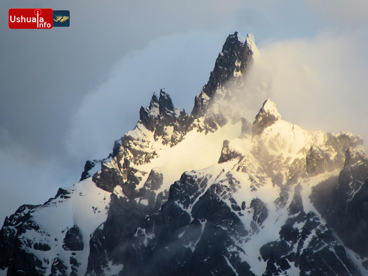20:37 hs. El sol acaricia la cima del Monte Olivia al caer la tarde - Un Instante en Ushuaia - Ushuaia-Info